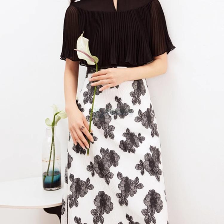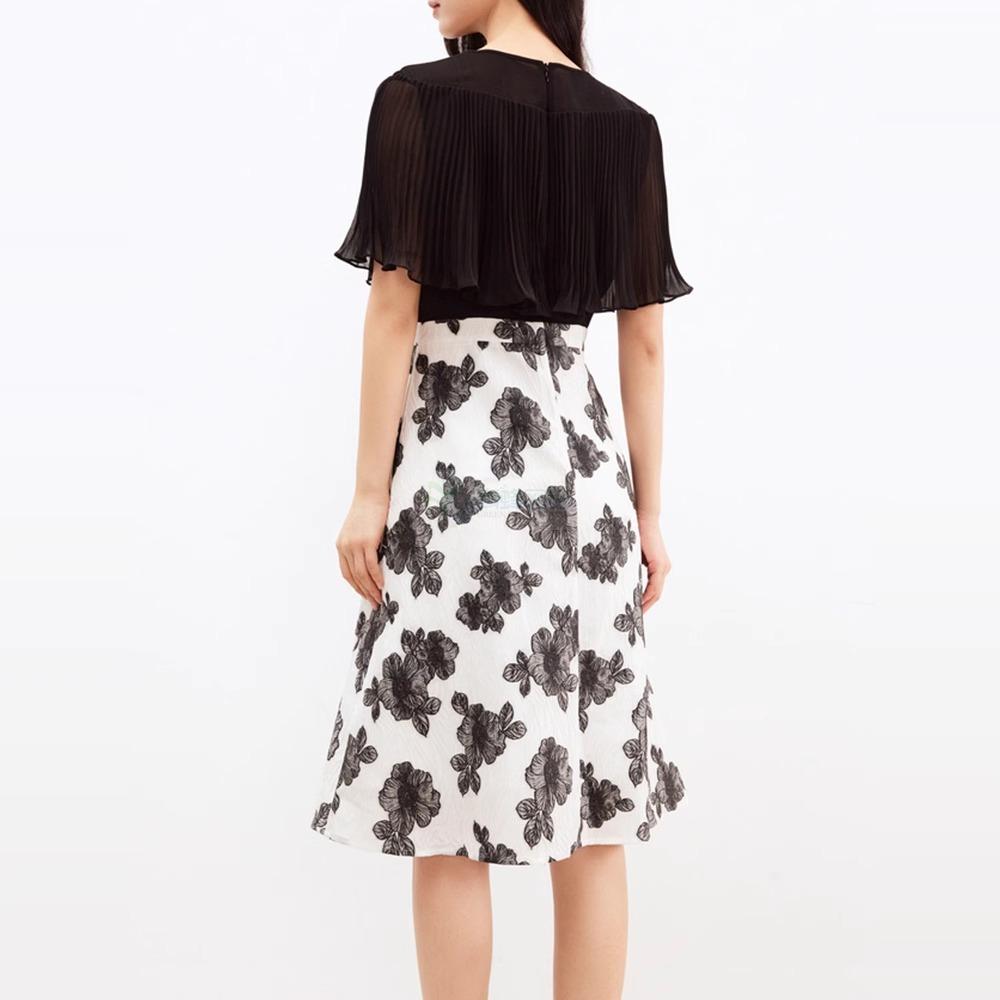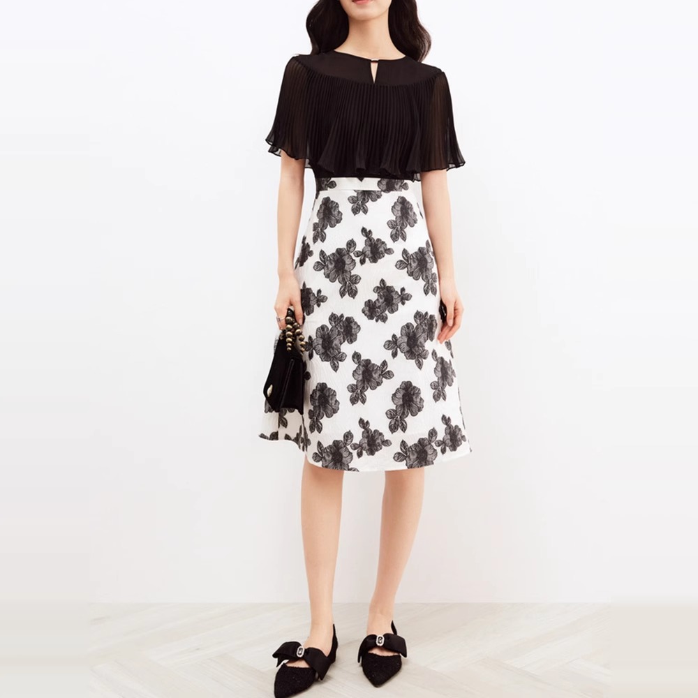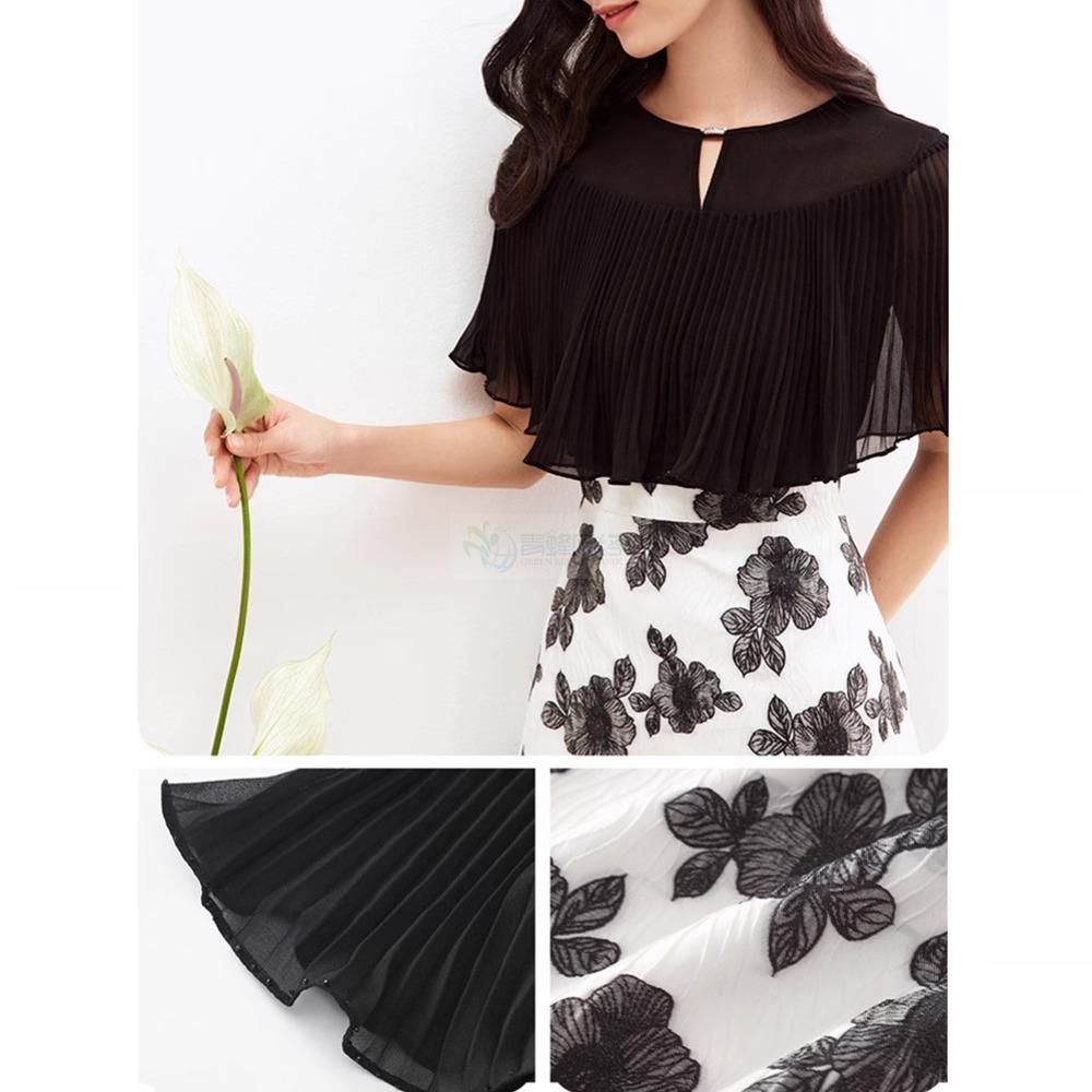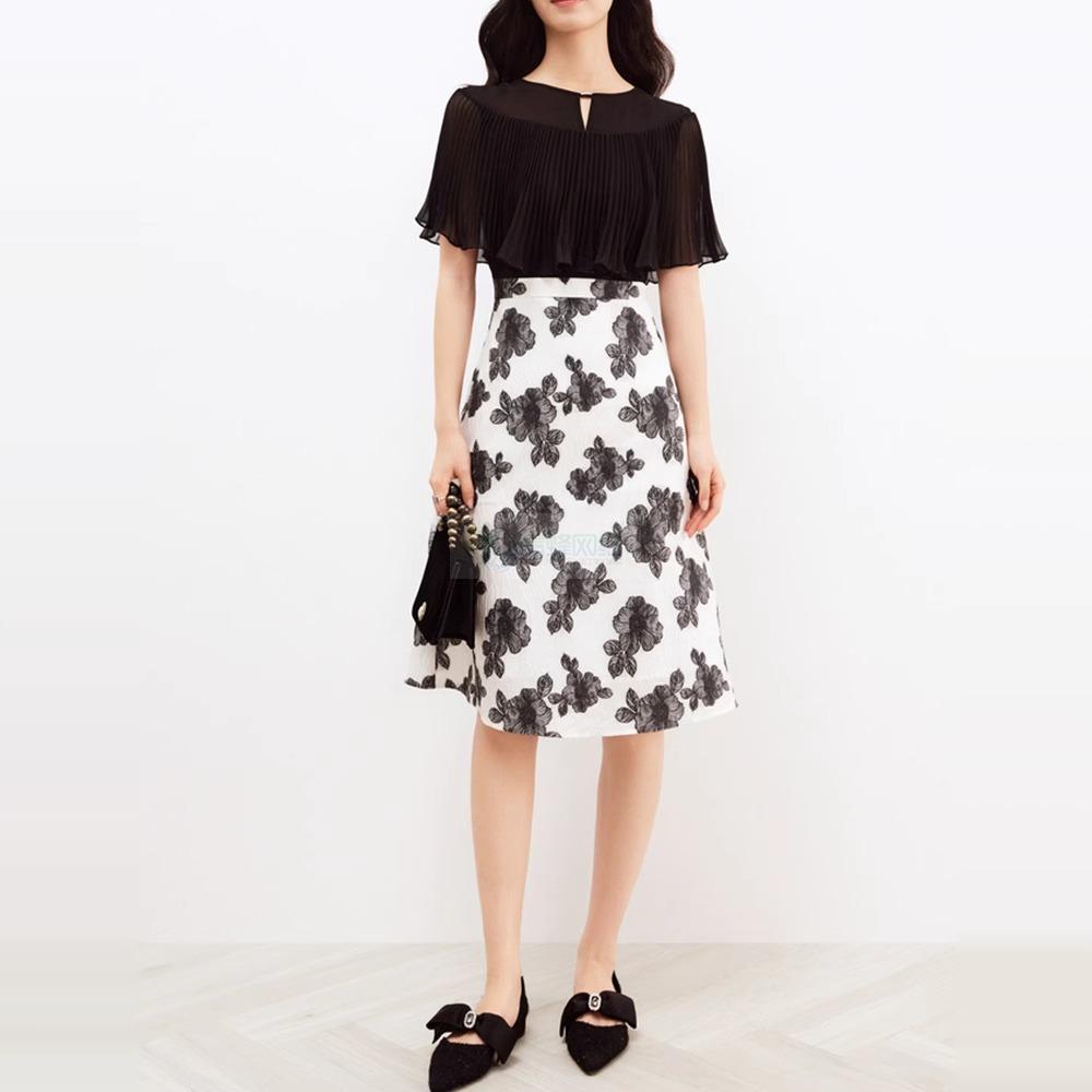 珂莱帝同款夏季新款法式气质设计感透气拼接假两件披肩袖连衣裙女