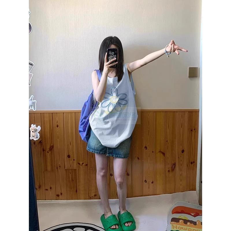 纯棉吊带坎肩背心无袖t恤女2025新款夏季外穿宽松篮球服挂脖...