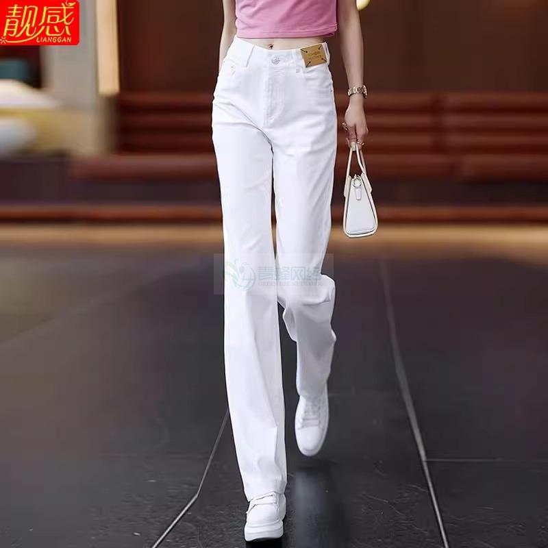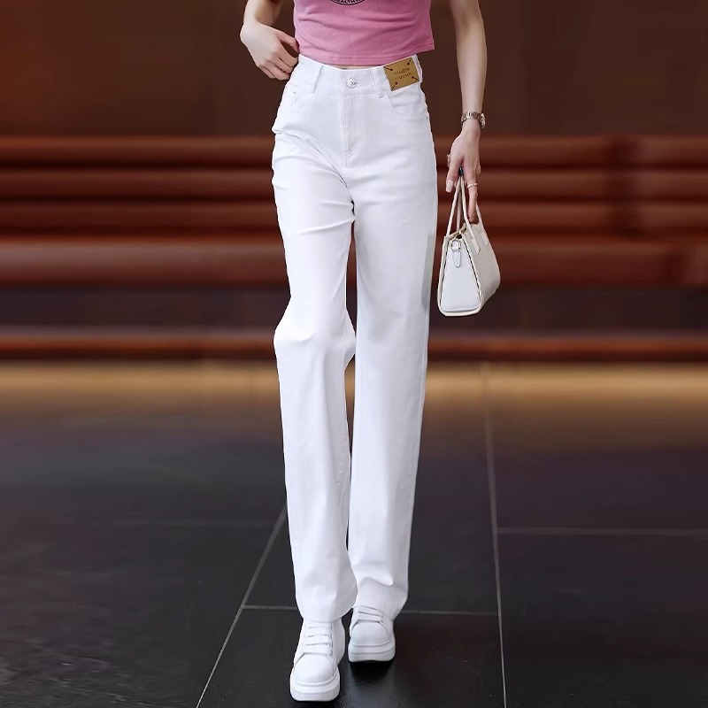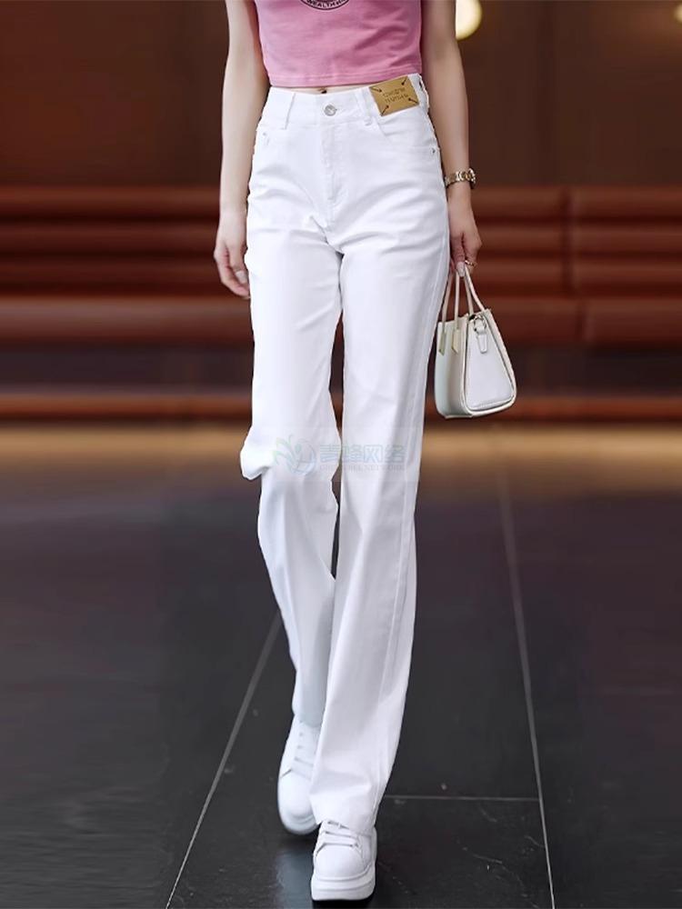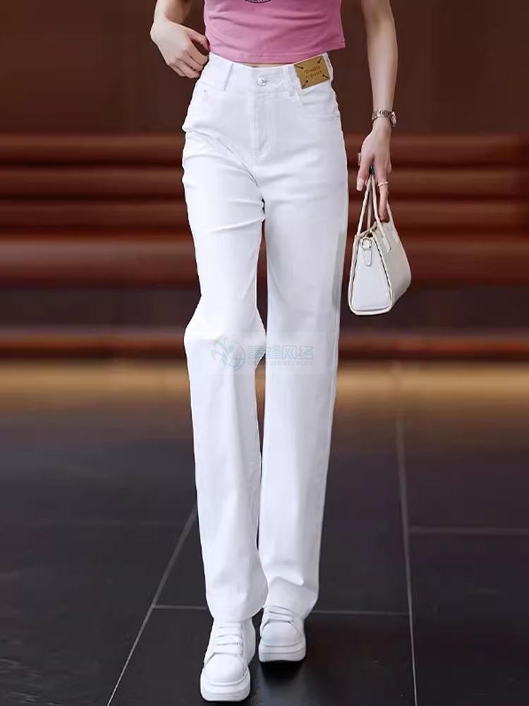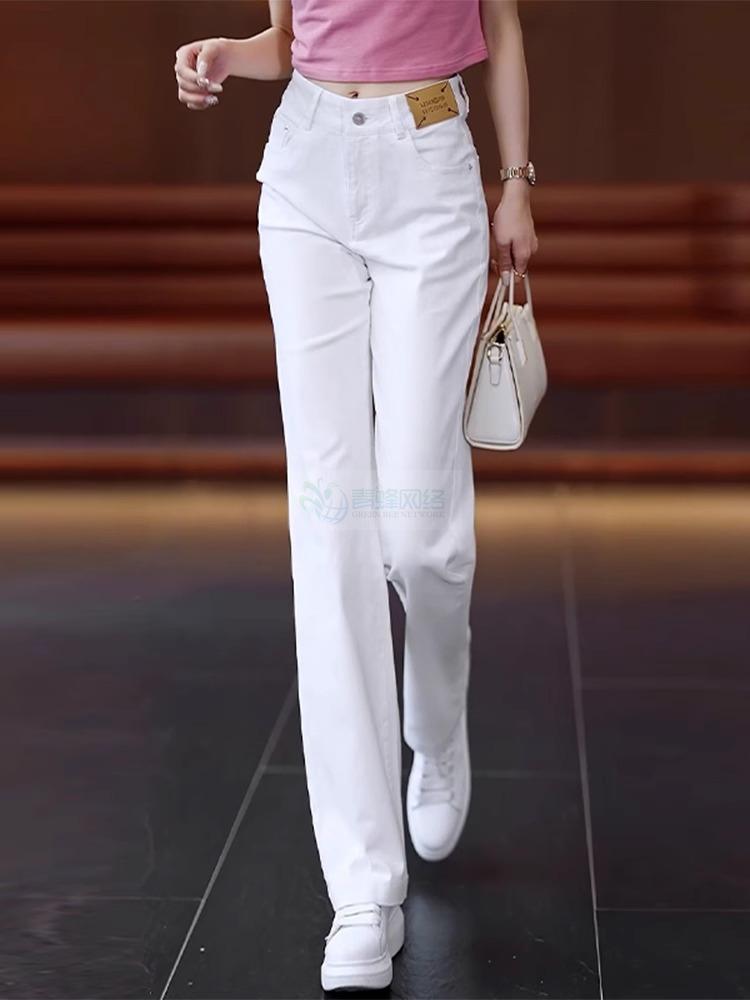 产品名称 : 高档纯白色纯棉柔软透气牛仔直筒裤女长裤夏季薄款休闲垂顺阔腿裤