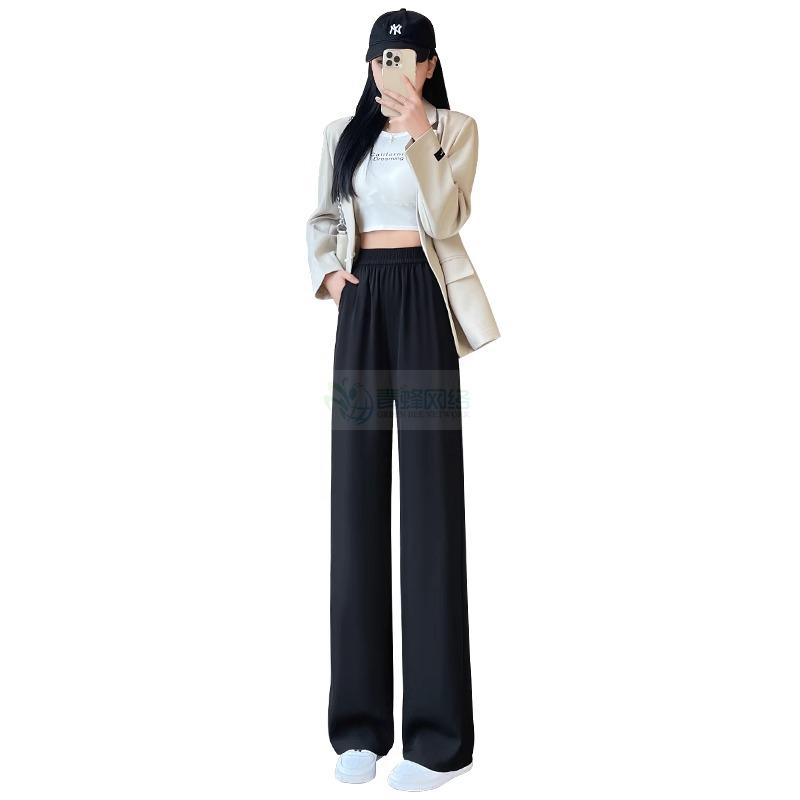 产品名称 : 冰丝阔腿裤女夏季薄款2025新款休闲垂感窄版直筒黑色西装裤子夏天